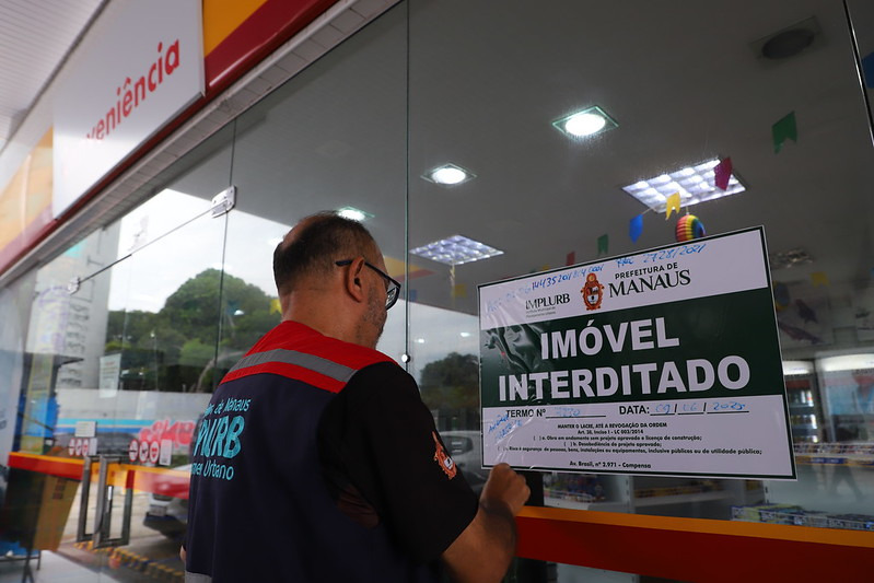 Em cumprimento à decisão judicial transitada em julgado no Tribunal de Justiça do Amazonas (TJ-AM), da 4ª Vara da Fazenda Pública, relacionada ao funcionamento irregular de postos de combustíveis no município pela falta do Habite-se/Habitabilidade, a Prefeitura de Manaus, via Instituto Municipal de Planejamento Urbano (Implurb), começou, nesta segunda-feira, 9/6, ações de interdição em imóveis em situação irregular.