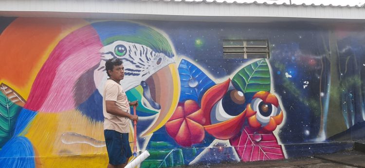 Maués vai ganhar murais que falam sobre a cultura do homem da floresta pelas mãos do artista visual Erick Dammon, conhecido como Nommad, que realiza o projeto “Murais de Mawe”, contemplado pelo Prêmio Feliciano Lana, da Lei Aldir Blanc, promovido pelo Governo do Amazonas, por meio da Secretaria de Cultura e Economia Criativa.