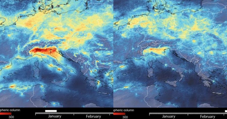 Estudos realizados pelo CREA (Centro de Pesquisa em Energia e Ar Limpo), com base em Estados Unidos, a partir de imagens de satélite produzidas pela NASA (Agência Espacial dos Estados Unidos) e pela ESA (Agência Espacial Europeia) mostram que a quarentena decretada na província de Hubei, epicentro do surto do coronavírus na China, em na Lombardia, principal foco da epidemia na Itália, causaram uma redução drástica na poluição ambiental em ambos os países.