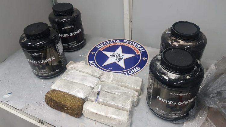 Por existirem suspeitas de presença de drogas nas cargas a Equipe K9 da Receita Federal em Manaus foi acionada e com a atuação do agente canino Deco ocorerram as confirmações da presença de entorpecentes. No dia 04/05 a EVR procedeu a verificação física das mercadorias contidas em carga com destino São Paulo/SP e constatou a presença de 8 tabletes de maconha, com o peso total de 4kg, e de pó com suspeita de ser cocaína, com peso total de 7kg. No dia 06/05 a EVR procedeu a verificação física das mercadorias contidas em carga com destino a Salvador/BA e contatou a presença de 30 tabletes de maconha, pesando 16,2 kg. Em ambos os casos as drogas encontradas estavam escondidas em potes de suplementos alimentares.