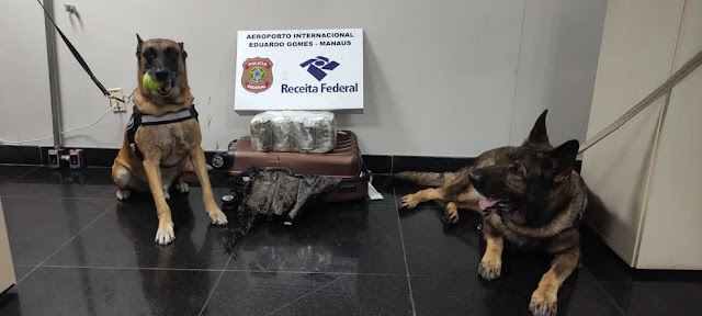 Na madrugada desta sexta-feira (9), a Receita Federal apreendeu 14,7 kg de drogas, do tipo skunk, em malas no Aeroporto Internacional Eduardo Gomes, em Manaus.