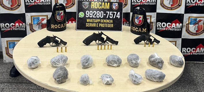 A Polícia Militar do Amazonas (PMAM), por meio das Rondas Ostensivas Cândido Mariano (Rocam), apreendeu três armas de fogo, munições e 12 porções de entorpecentes, na noite de domingo (11/01). A ação policial foi efetuada no bairro Compensa, zona oeste da capital amazonense.