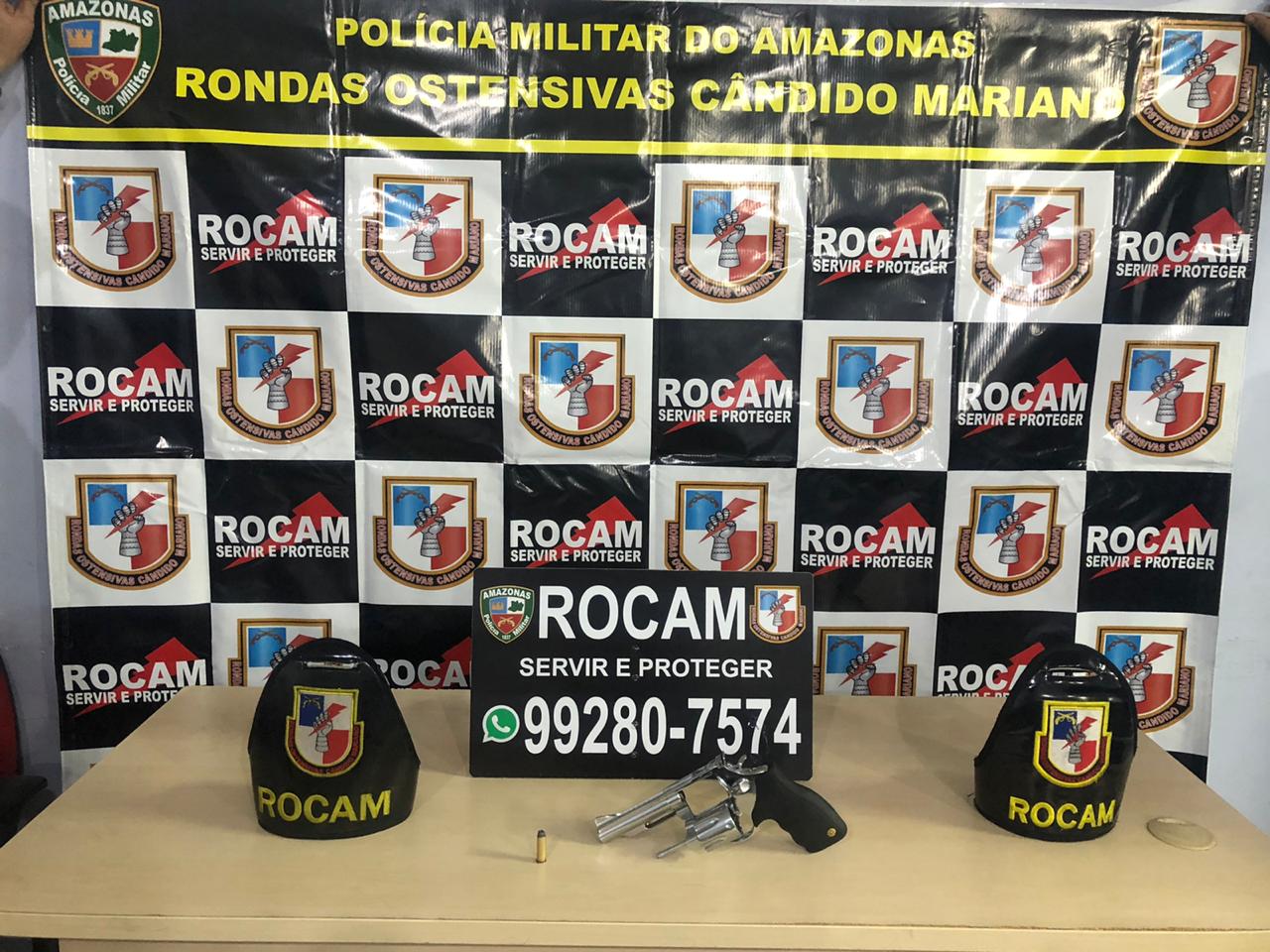 Policiais militares das Rondas Ostensivas Cândido Mariano (Rocam) detiveram, na noite desta segunda-feira (13/04), um homem de 23 anos suspeito de porte ilegal de arma de fogo no bairro Petrópolis, zona sul da capital. Com ele, os policiais apreenderam um revólver calibre 38, contendo uma munição intacta.
