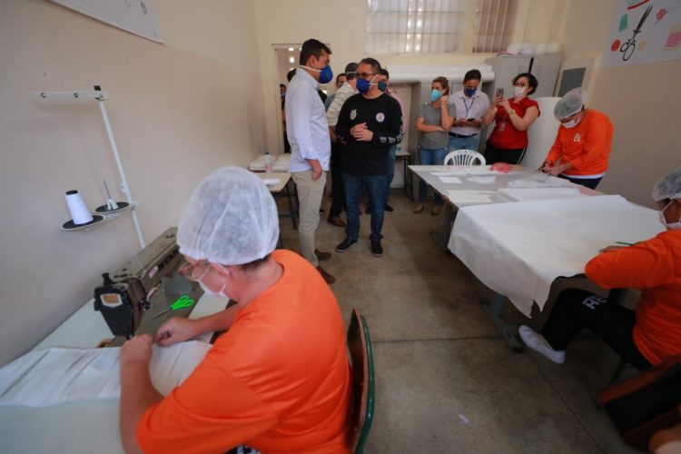Nesta terça-feira (24/03), o governador Wilson Lima e o titular da Seap, coronel Vinícius Almeida, visitaram o núcleo de costura na Penitenciária Feminina de Manaus (PFM), onde detentas do regime fechado iniciaram a confecção dos equipamentos de proteção individual.