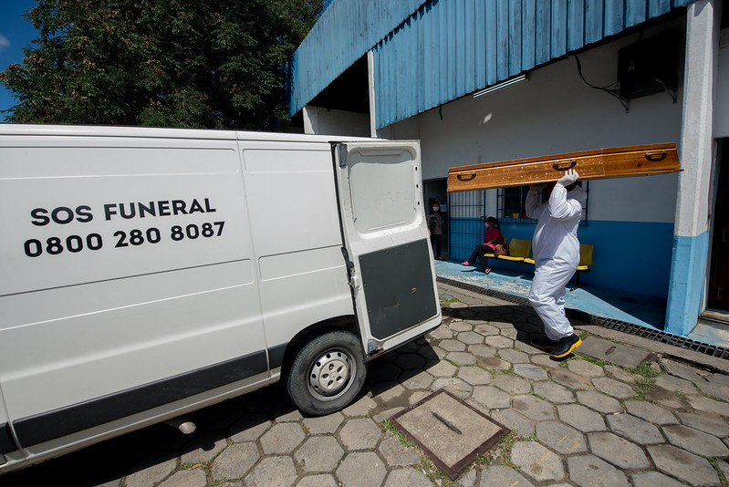 Até as 14h desta quinta-feira, 14/1, o SOS Funeral já havia feito a remoção de 17 corpos, dos quais oito deles tiveram a Covid-19 como declaração de causa da morte.