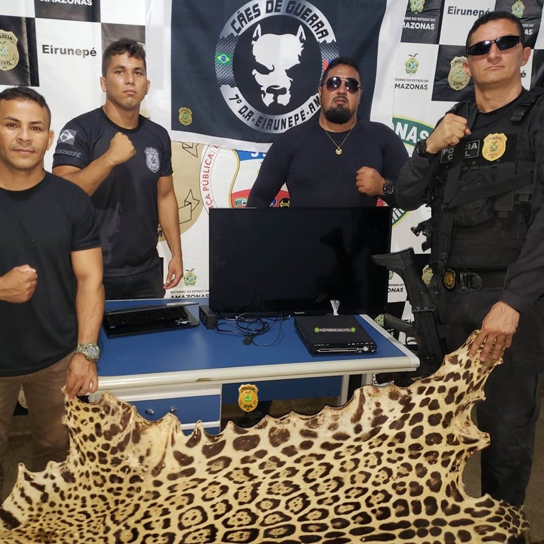 Os policiais conseguiram recuperar um notebook, uma TV LC de 39 polegadas, DVD, e foi apreendido no local uma pele de onça pintada.