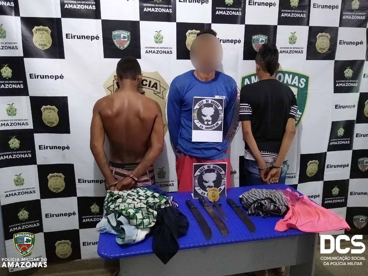 Policiais militares da 1ª Companhia Independente de Polícia (CIPM), em ação conjunta com a Policia Civil, na manhã de ontem (22/11), detiveram um homem de 31 anos e apreenderam dois adolescentes de 15 e 17 anos, suspeitos de latrocínio (roubo seguido de morte) no município de Eirunepé, distante 1.159 km de Manaus.