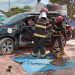 Bombeiros removem corpo de vítima de acidente das ferragens de veículo, na AM-010