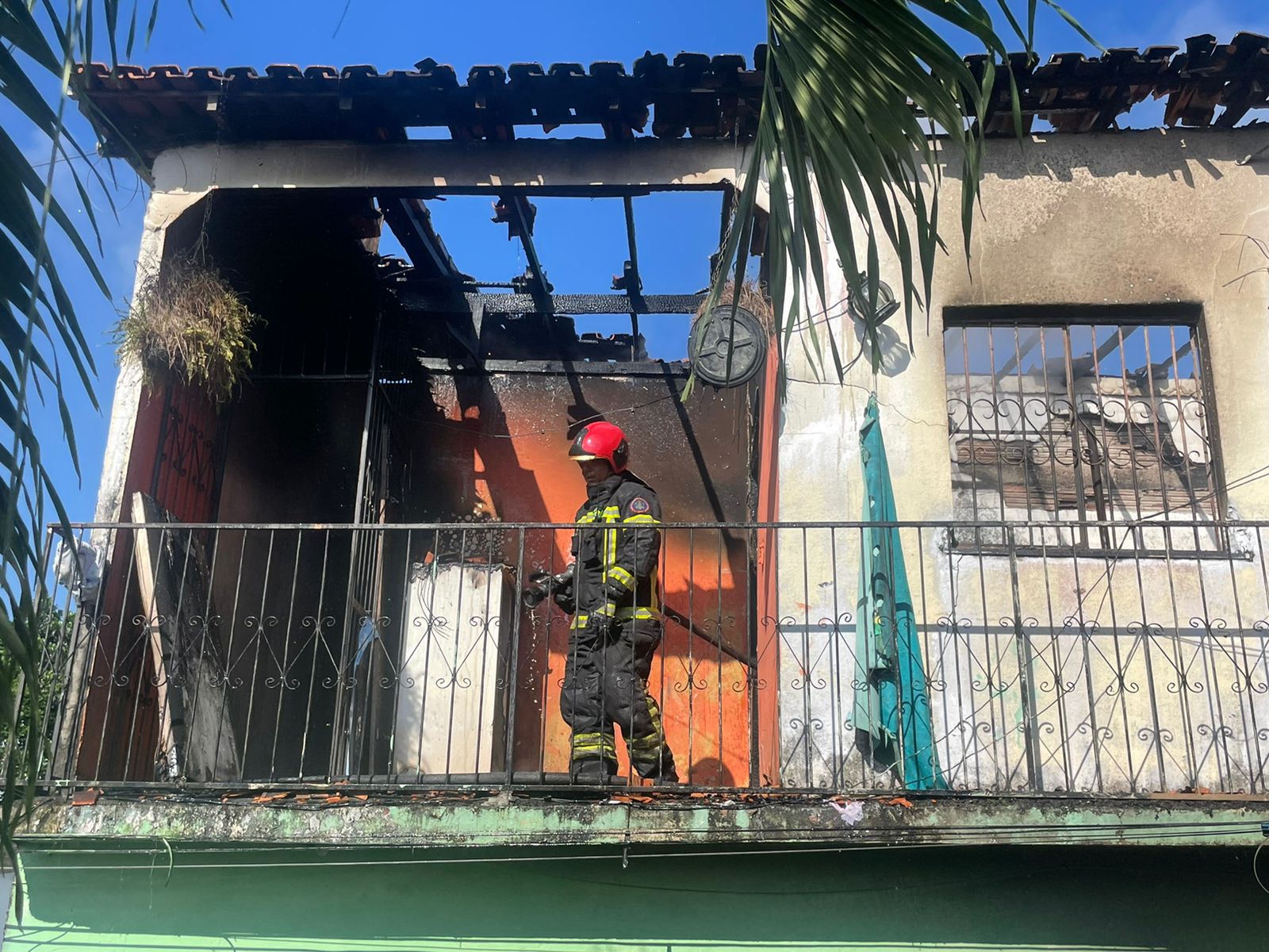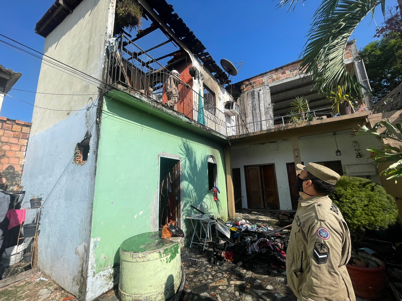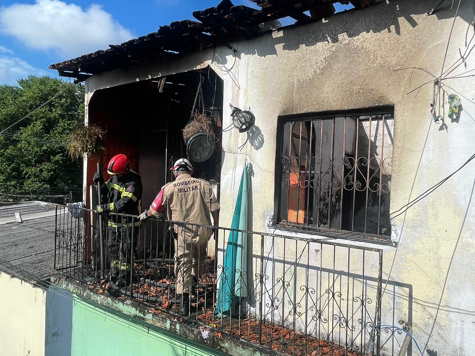 Uma casa de alvenaria de dois andares pegou fogo na manhã deste domingo (14), na travessa Henoch Reis, no bairro Da Paz, Zona Centro-Oeste.