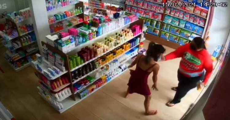 Funcionários que ficam monitorando as câmeras do local perceberem a ação criminosa, logo avisaram uma segurança que estava na portaria. A dupla foi barrada antes de sair da farmácia.