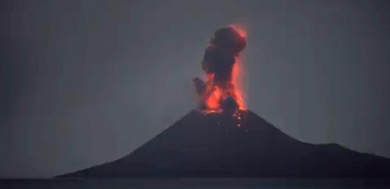 O vulcão Anak Krakatoa, na Indonésia, entrou em erupção após uma violenta explosão no início da madrugada deste sábado (11).